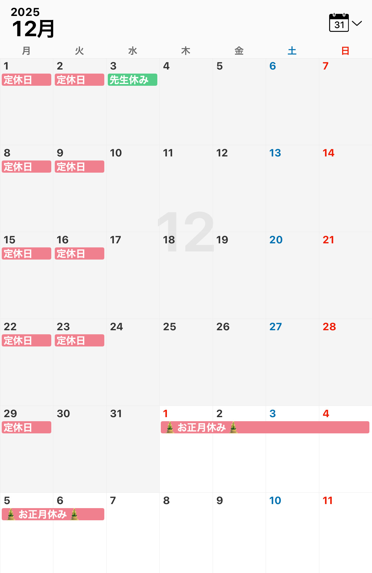 💡1月につきましては1日〜6日までお正月休みを頂き、7日(水)より通常営業させて頂きます。